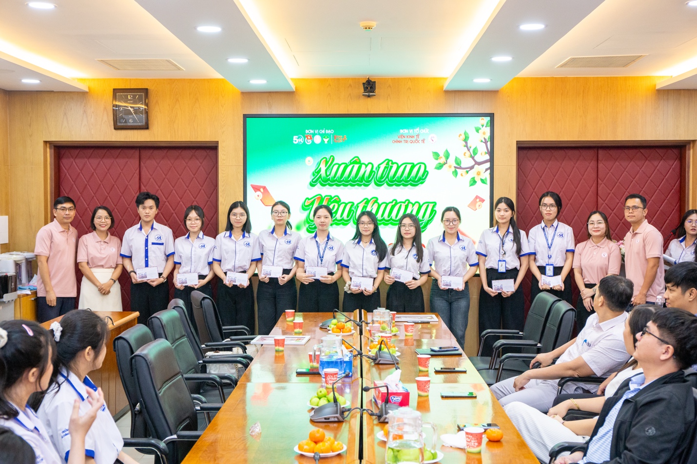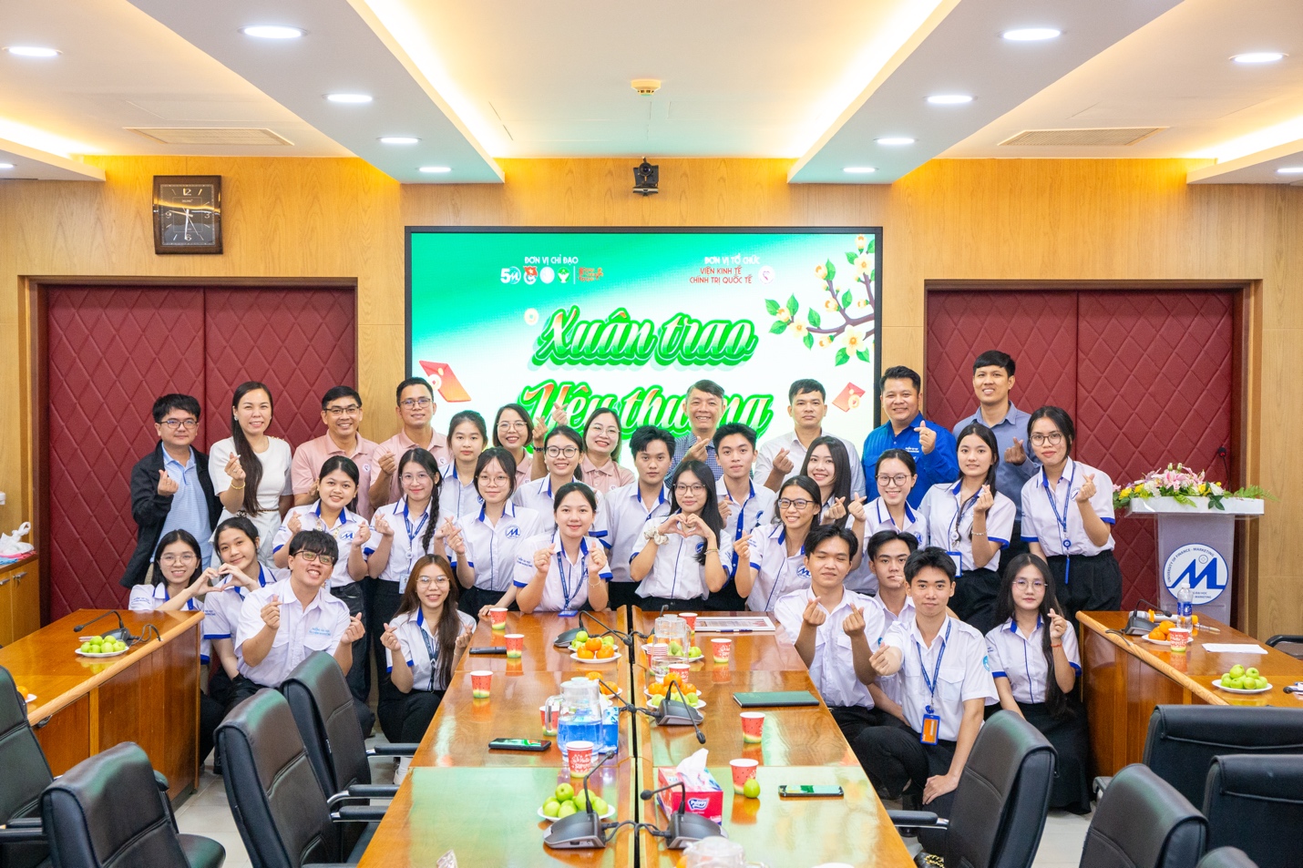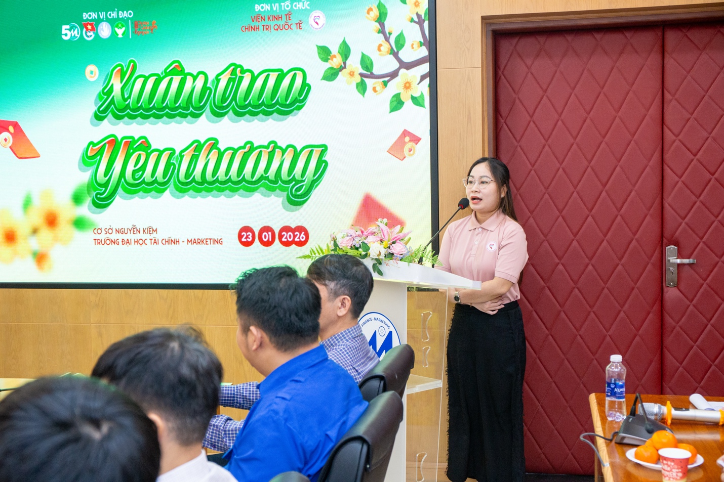 Sáng ngày 23/01/2026, tại Phòng A.303, Trụ sở 778 Nguyễn Kiệm, Trường Đại học Tài chính - Marketing, chương trình “Xuân trao yêu thương” do BCH Đoàn - LCH sinh viên Viện Kinh tế Chính trị Quốc tế (Viện KTCTQT) tổ chức đã diễn ra trong không khí ấm áp, trang trọng và đầy ý nghĩa. Chương trình là hoạt động thiết thực trong khuôn khổ Chiến dịch Xuân Tình nguyện năm 2026, hướng đến chăm lo, hỗ trợ sinh viên có hoàn cảnh khó khăn, sinh viên có gia đình chịu hậu quả bão lũ năm 2025 nhân dịp Tết Nguyên đán Bính Ngọ 2026.