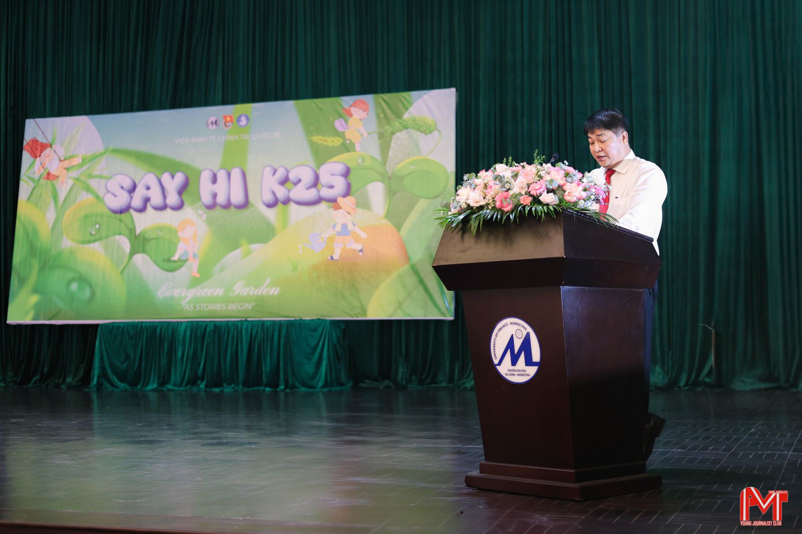 Phát biểu tại buổi lễ, đại diện lãnh đạo Viện KTCTQT chúc mừng các tân sinh viên đã xuất sắc vượt qua kỳ tuyển sinh, đồng thời nhấn mạnh ý nghĩa thiết thực của ngành học trong bối cảnh hội nhập quốc tế và chuyển đổi số. Sinh viên sẽ được trang bị kiến thức hiện đại, rèn luyện bản lĩnh, tác phong khoa học và tư duy sáng tạo – nền tảng để tự tin bước vào thị trường lao động cạnh tranh.